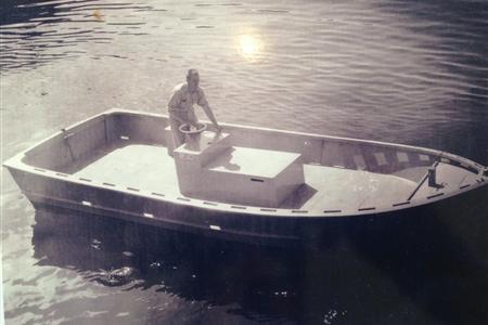 This is a picture of the first boat that Bob built. He was 14 and his dad bought him the plans out of popular science magazine