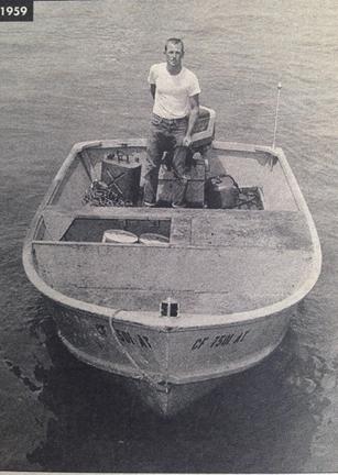 Bob and his partner Don Jorakmon fished lobsters out of this skiff at Santa Barbra Island between 1958-1963. They would leave in the morning, fish all day, then sleep on the deck in sleeping bags. Fish the next day and then come home. Pretty hardcore.! It was powered by a direct drive chrysler crown engine. Top speed 23 knots cruise at 17